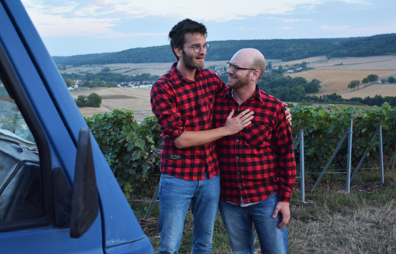 Michel with friend Jean, a French illustrator, in Champagne, France