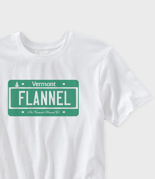 Vermont Flannel License Plate Graphic T-Shirt - White