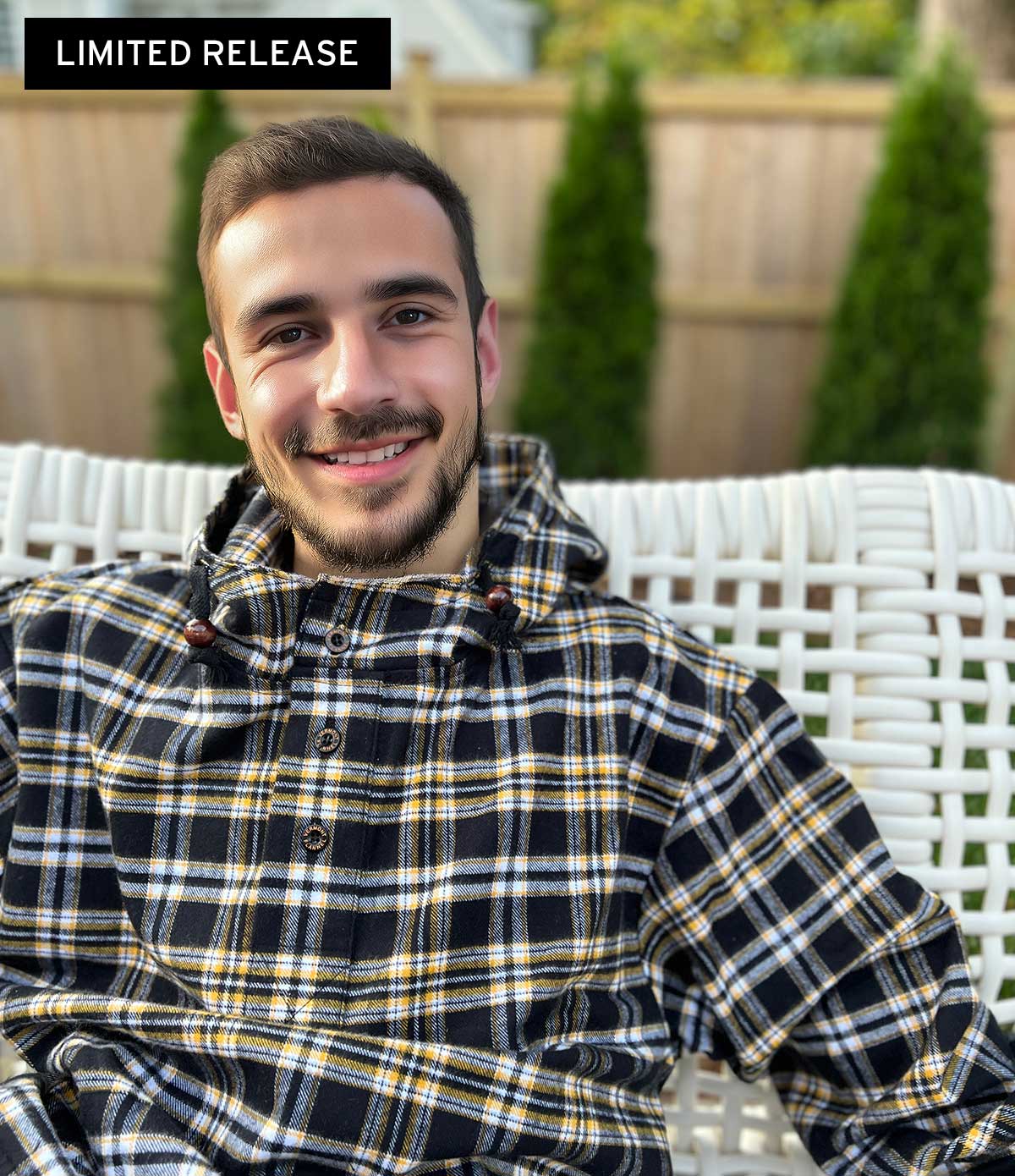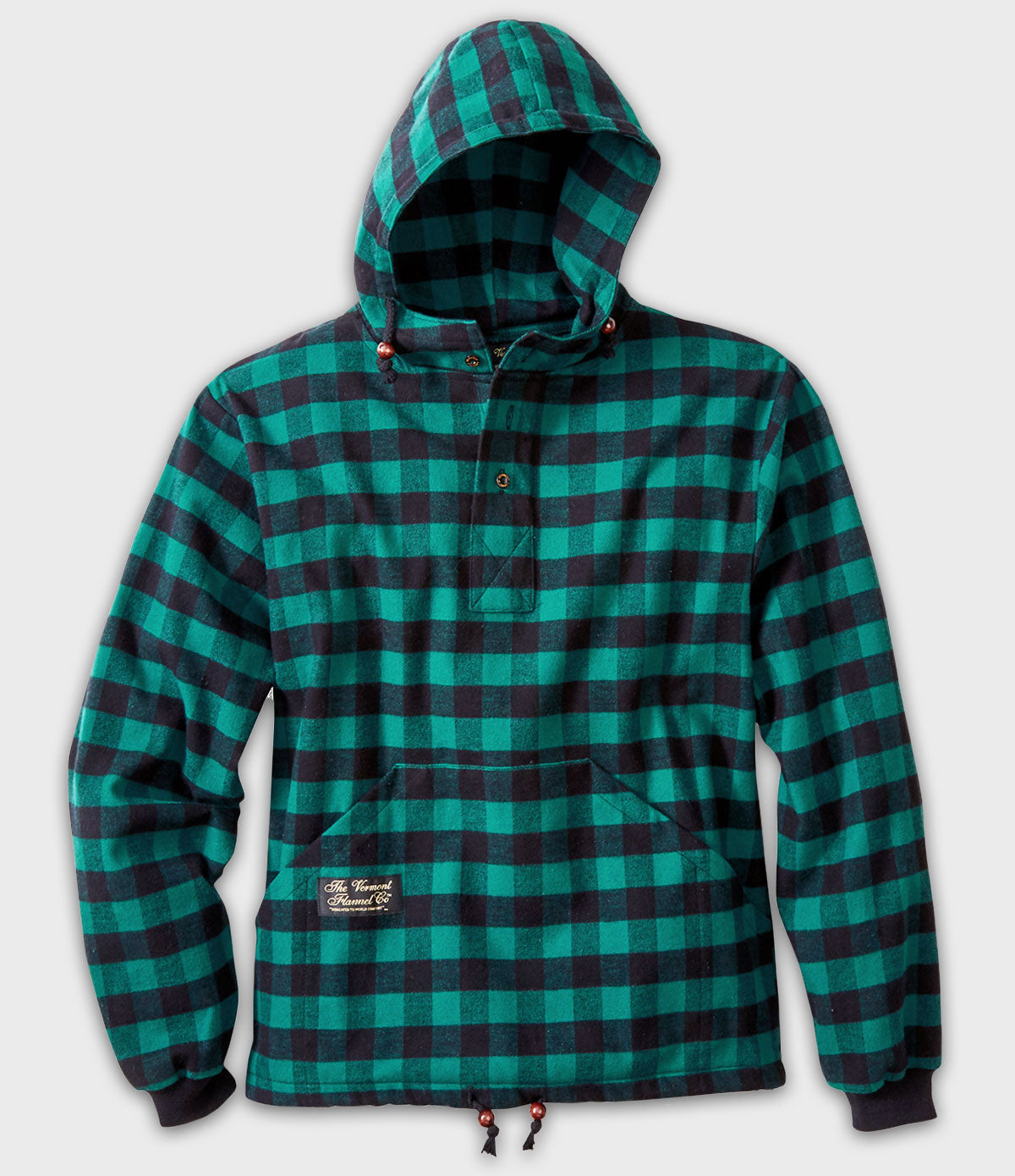 On cold mornings in Vermont, the sheep laugh at the weather with a hearty “Baa Haa.” You can laugh too in this toasty flannel jacket! The Vermont Flannel Hooded Pullover is so stylish and warm, it makes sheep jealous. A double lined hood with drawstring closure for a comfy fit. The roomy front pouch helps keep your hands warm. Drop shoulder sleeves and drawstring bottom with wooden bead detail. Tightly woven flannel, minimal shrinkage, wash cool & dry low. Brushed beyond reason for ultimate softness, made with 100% organic cotton. Available in our midweight (6.8 oz) and heavyweight Patchwork (11.8 oz) fabrics. Sizing is unisex. Finest European fabric. Hand cut and sewn in the USA.